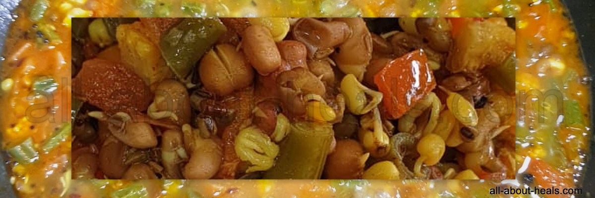 Hey, I am back with my new blog. This blog also on less time consuming and healthy dish. You all must be thinking that why I am not posting dessert dishes on Diwali time? I want to, but what I think everyone is doing the same thing. So, let me do something different because we can’t eat only desserts, even if it is a Diwali or any festival. We need some of the meal items to make us satisfying with the meal dish. It also should be easy to make because all of us need much time to spend with family and friends. So, I thought let me help you all to make some easy and healthy dishes for Diwali time. You can make these dishes on other days also and enjoy it. Now collect the ingredients for Sprout Veggie Curry.