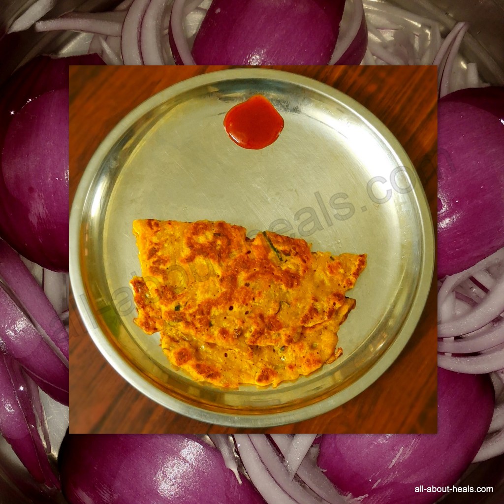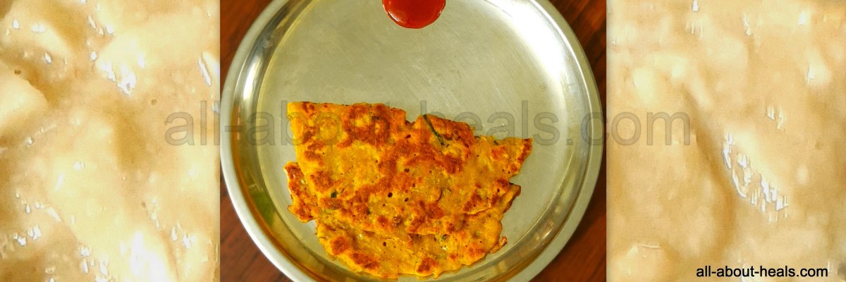 Now mix well all the ingredients and add water to make a batter-like pancake. Heat the pan and spread a small amount of batter on the pan, spread evenly, if required, spread a little amount of oil. Now cover with the lid, cook it on simmer flame. After a minute, check and flip the side and cook it for normal heat. Now your Aalu Chila is ready to serve. Serve this with salad and tomato sauce. It is yummy. I love it 🙂 it’s so easy and healthy, try it once I am sure you will make it again and again. Enjoy your hot Aalu Chila / Aaloo Cheela.